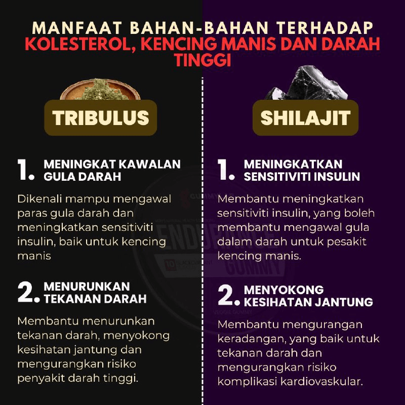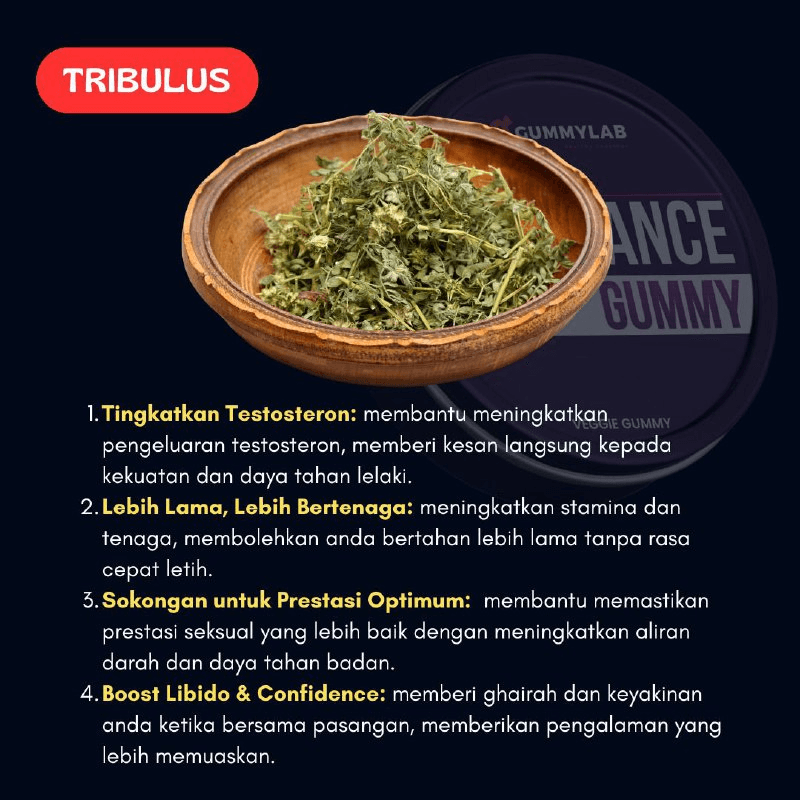 Gummy Endurance adalah yang pertama di Malaysia menggunakan Tribulus sebagai bahan utama—berbeza dari produk lain di pasaran.