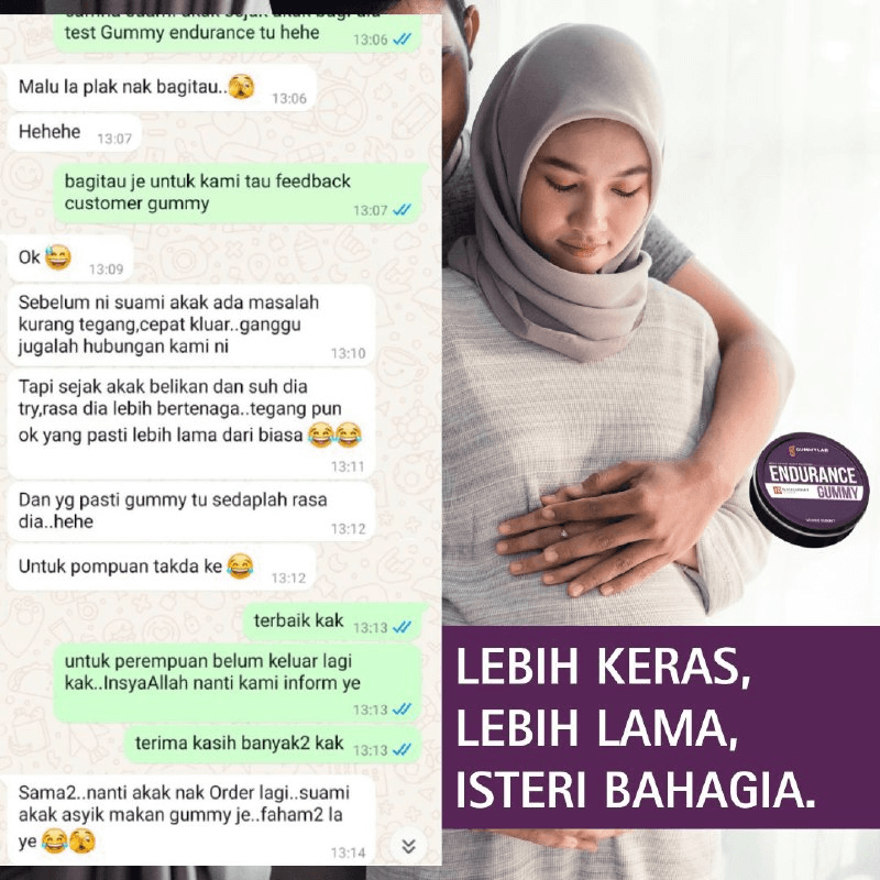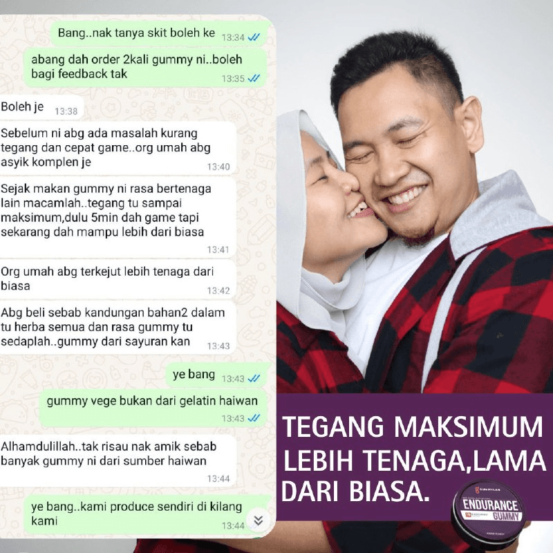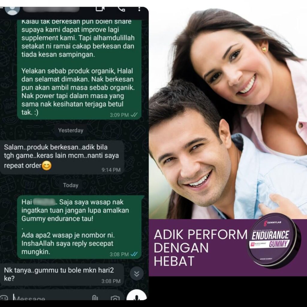 Tak kira pakej mana yang tuan pilih, Gummy Endurance memang diformulasikan khas untuk beri stamina dan tenaga ekstra yang tuan perlukan untuk bahagiakan isteri setiap masa.